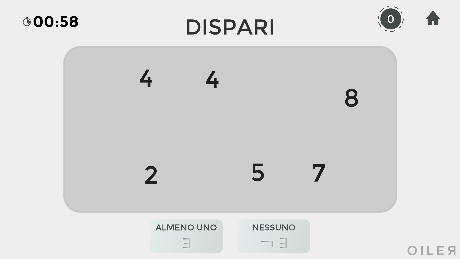 Nel livello 1 di numeri, compaiono i numeri compresi fra 1 e 9 e le proprietà PARI e DISPARI.