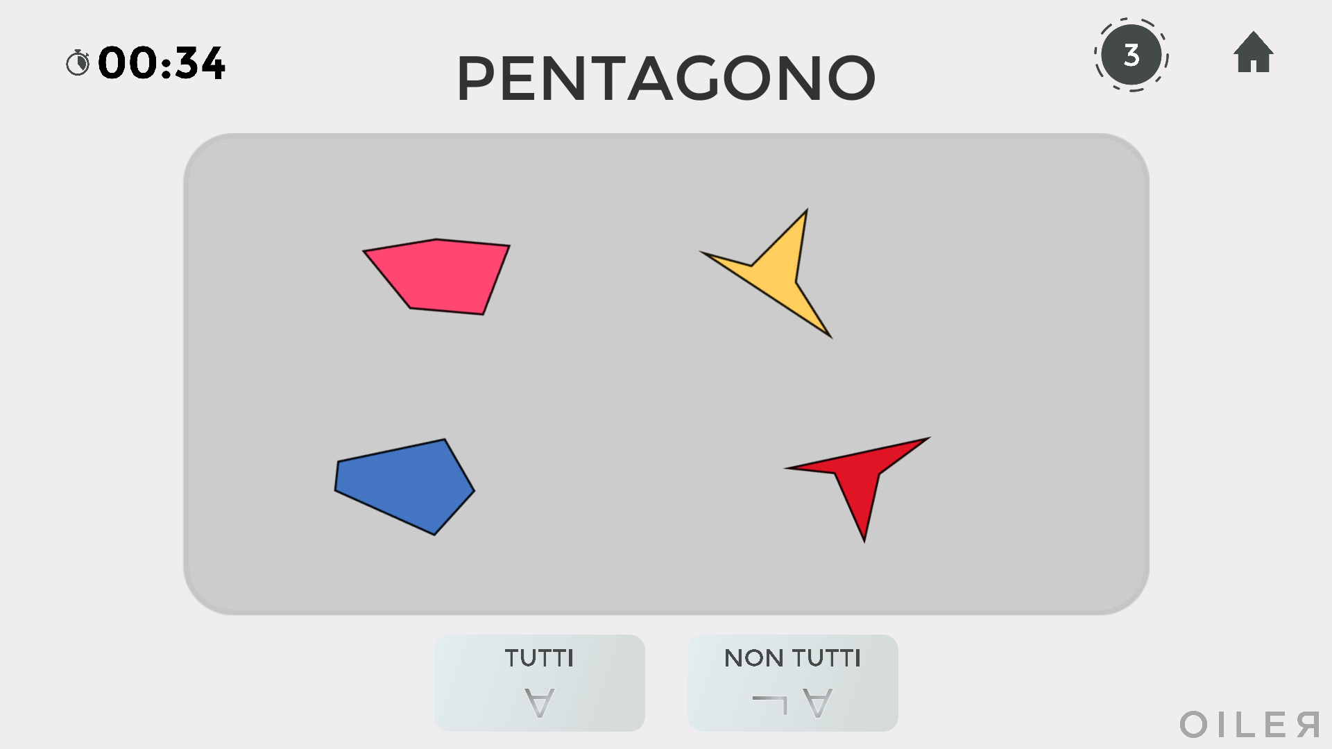 Nell'esempio in figura, la risposta è "tutti" perché tutti i poligoni mostrati hanno 5 lati.