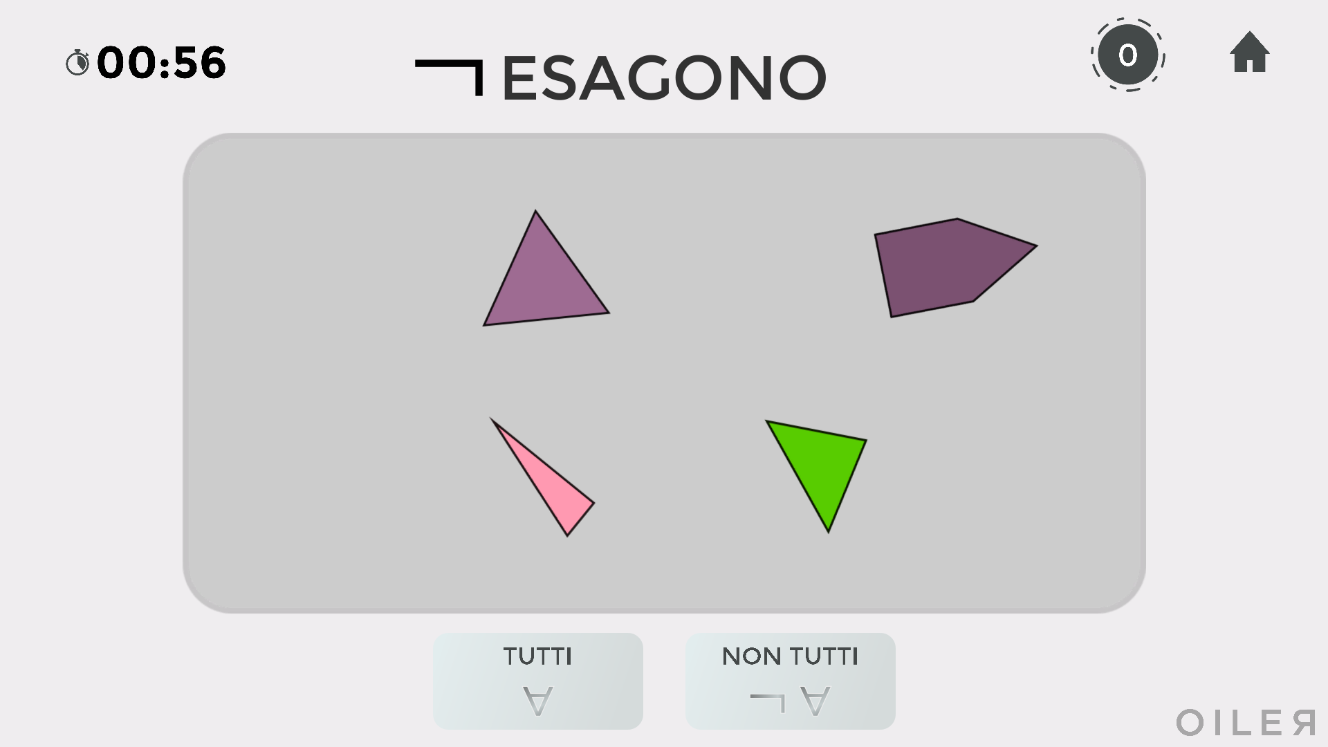 Nella pagina iniziale si seleziona il tipo di domande, gli oggetti che compariranno (colori, poligoni o