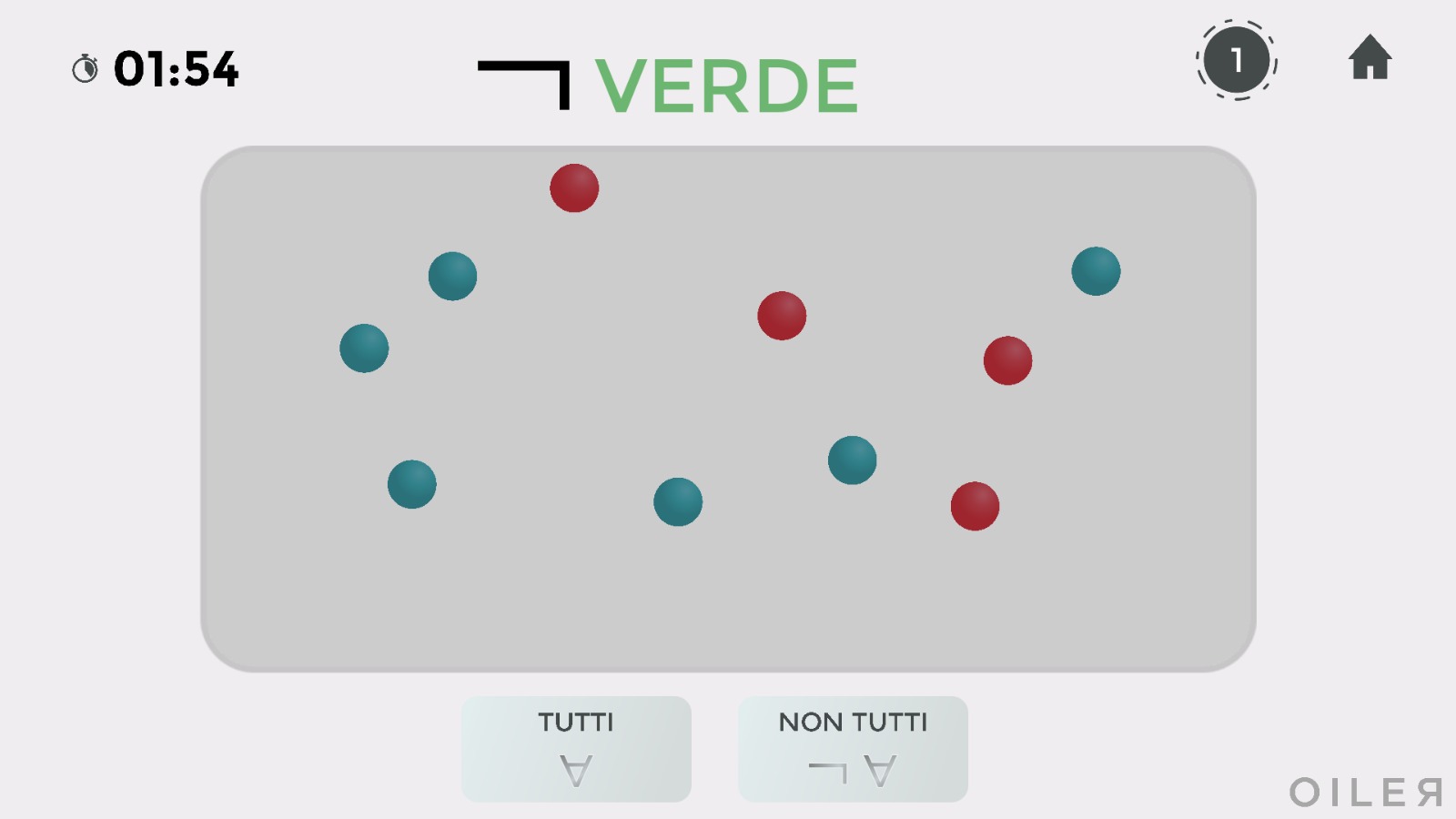 A ogni turno bisogna stabilire se tutti i pallini sono o meno del colore citato.